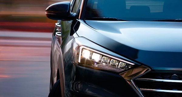 The Tucson makes an impressive entrance with its athletic side character line and aggressive, wide stance. Up front, the dominant hexagonal front grille is complemented by stylish and efficient lighting technology — like the available LED headlights with High Beam Assist to conveniently turn your high beams on and off automatically.